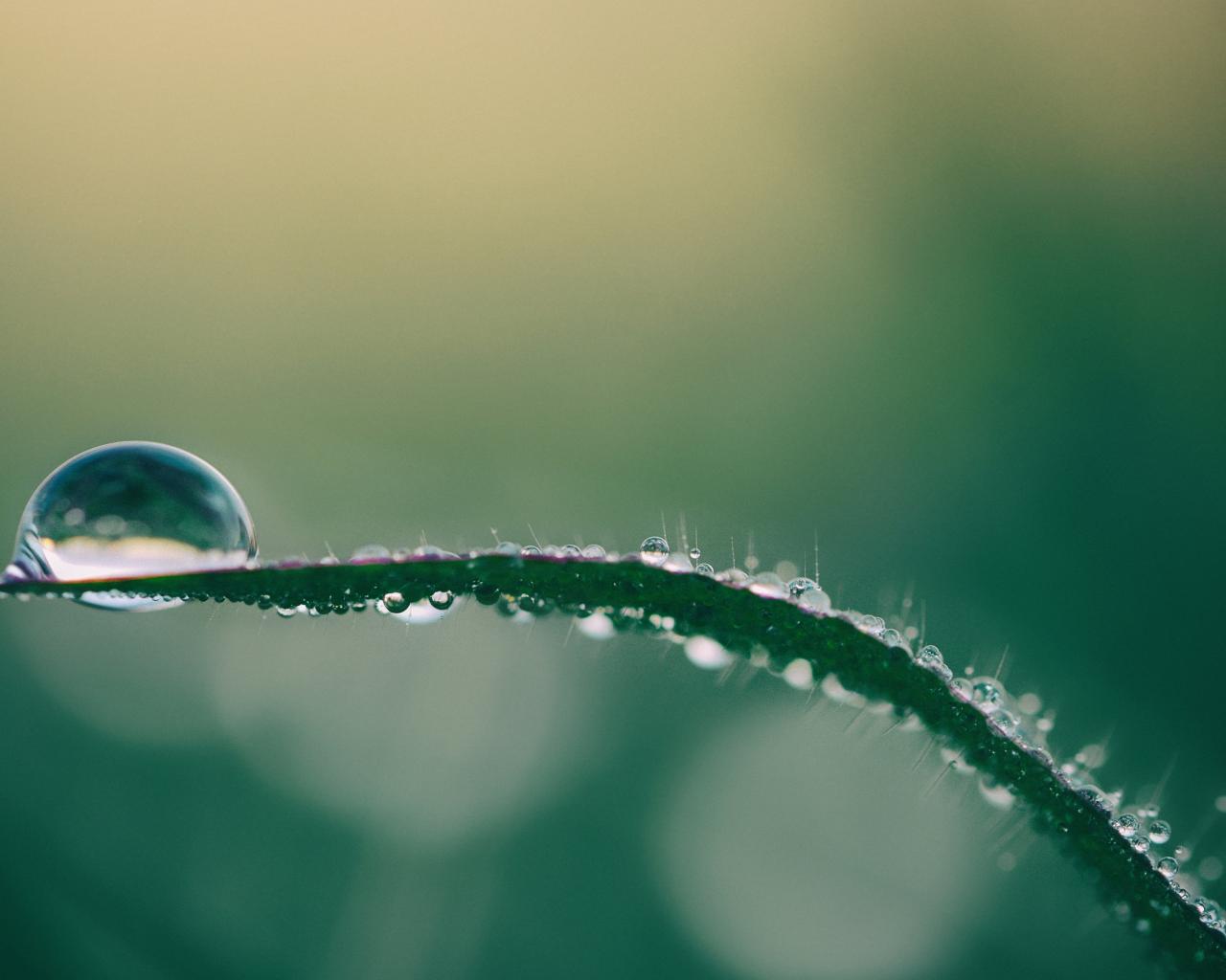 Обои Капля росы на зеленой траве крупным планом
