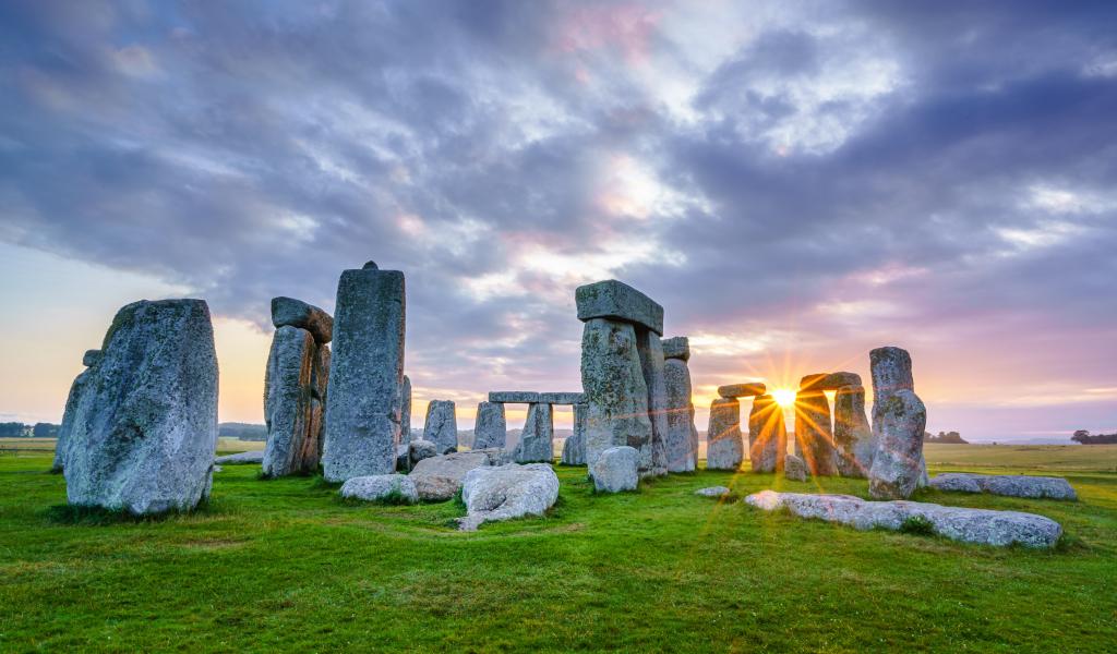 Обои Солнце пробивается сквозь камни Стоунхенджа