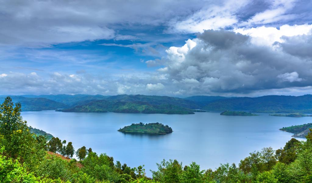 Обои Красивый вид с высока на залив под грозовыми облаками