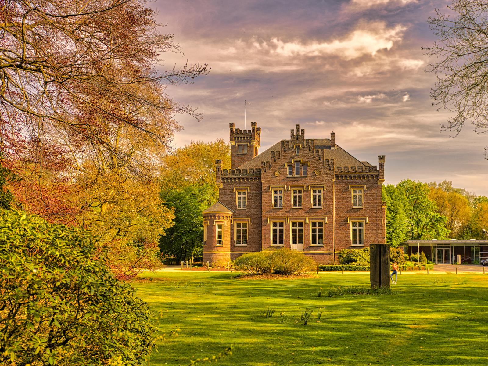 Обои Большой трехэтажный дом в зеленом парке