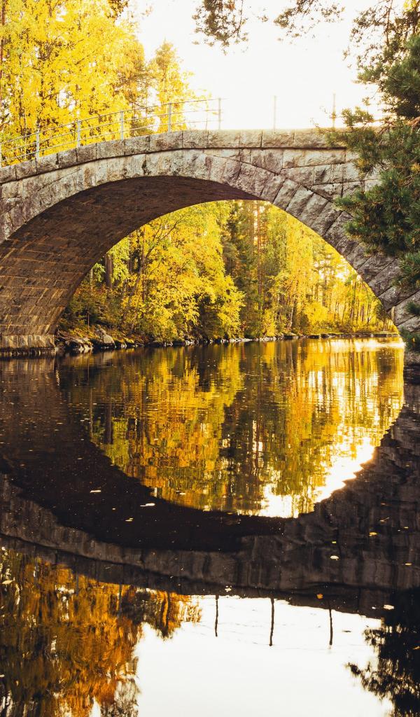 Обои Старый каменный мост через реку в лесу