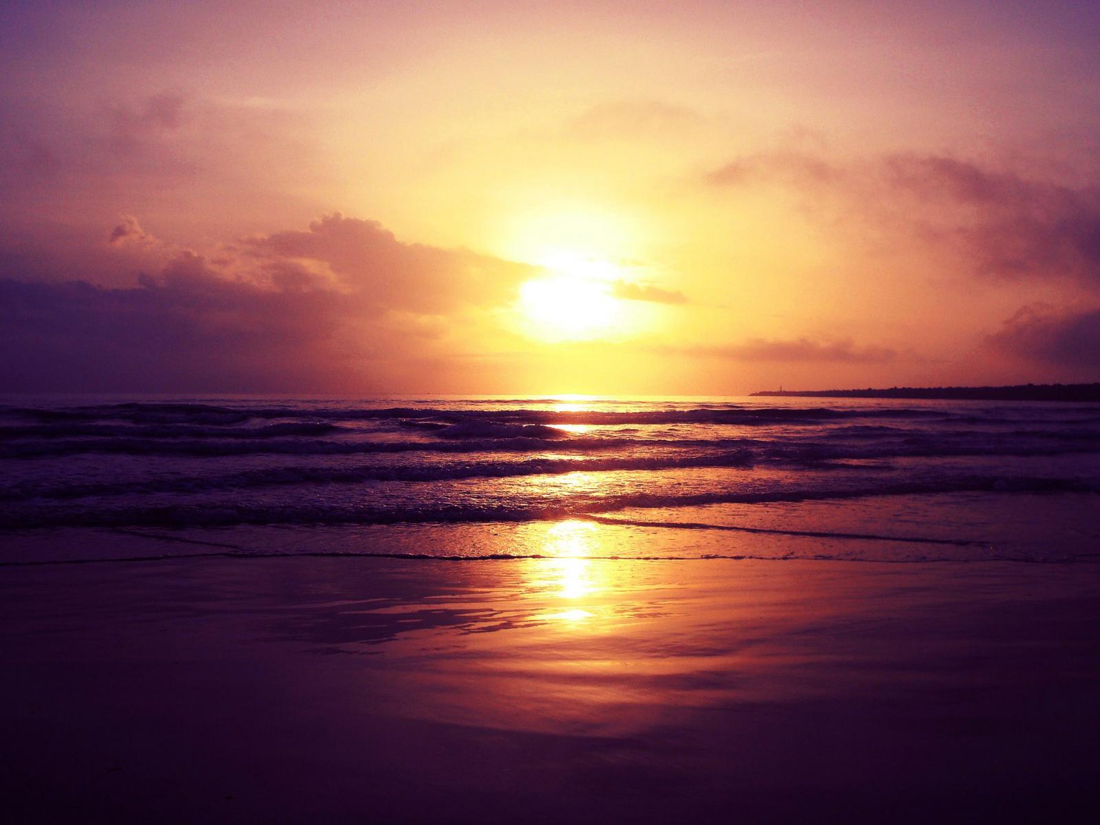 Обои Закат яркого солнца над океаном