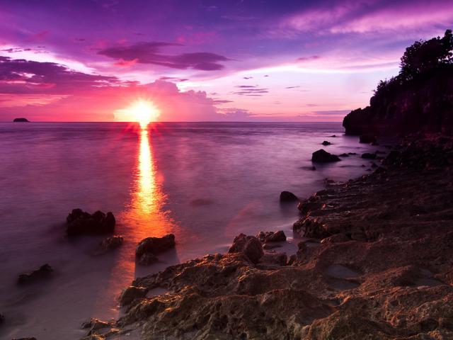 Обои Каменный пляж на закате солнца