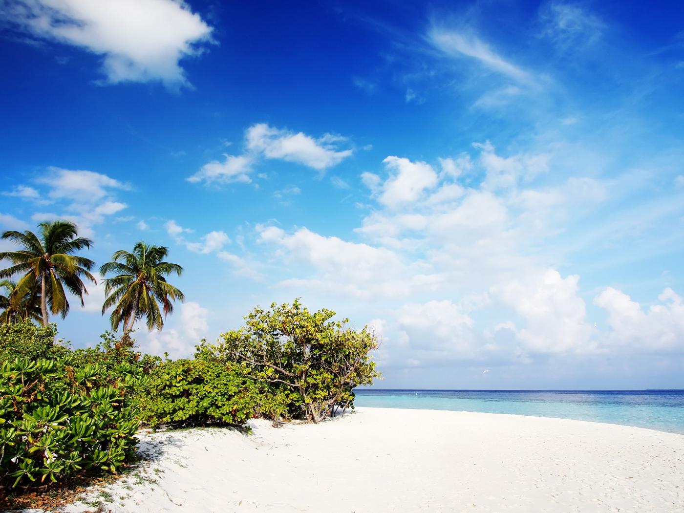 Обои Тропический атолл на фоне голубого неба