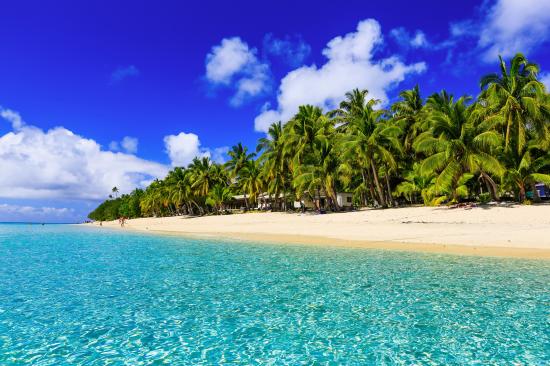 Обои Чистая голубая вода у тропического побережья под голубым небом