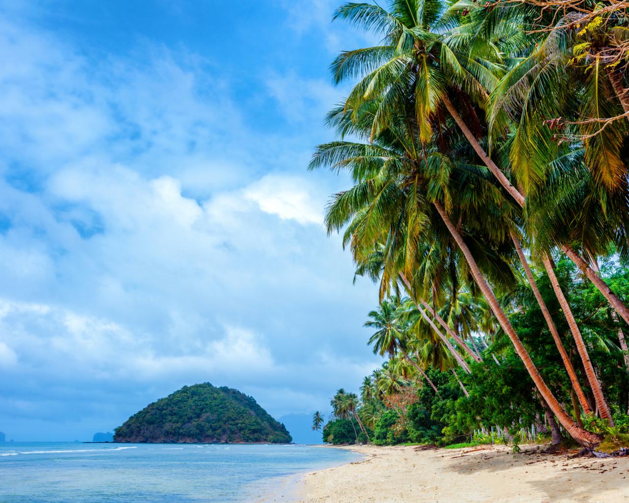 Обои Пальмы на тропическом пляже на побережье Филиппин