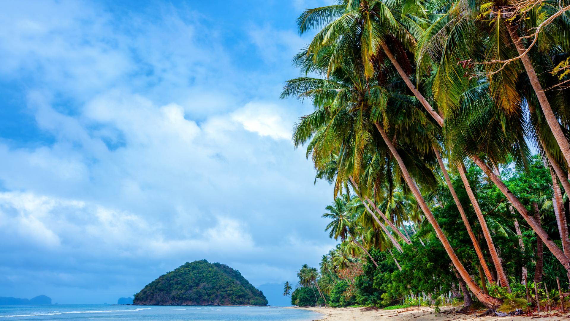 Обои Пальмы на тропическом пляже на побережье Филиппин