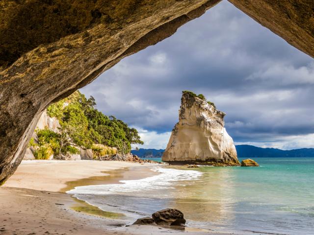 Обои Вид на скалы на пляже у океана, Новая Зеландия
