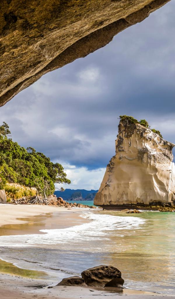 Обои Вид на скалы на пляже у океана, Новая Зеландия
