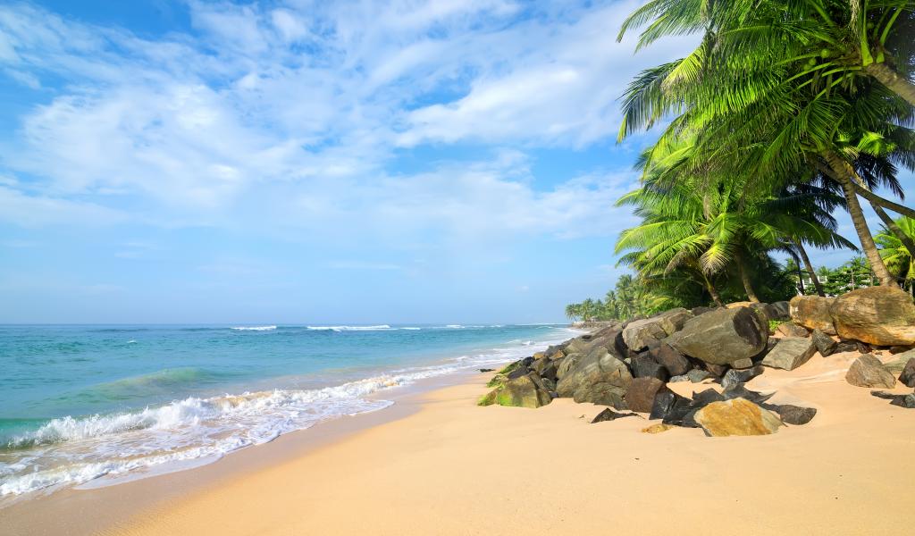 Обои Большие камни на тропическом пляже у океана