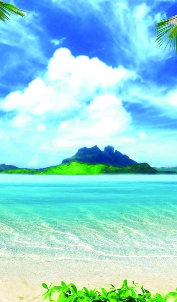 Обои Красивый тропический пляж под голубым небом с белыми облаками