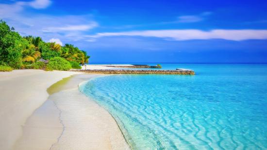 Обои Чистая голубая вода океана на белом песке тропического пляжа