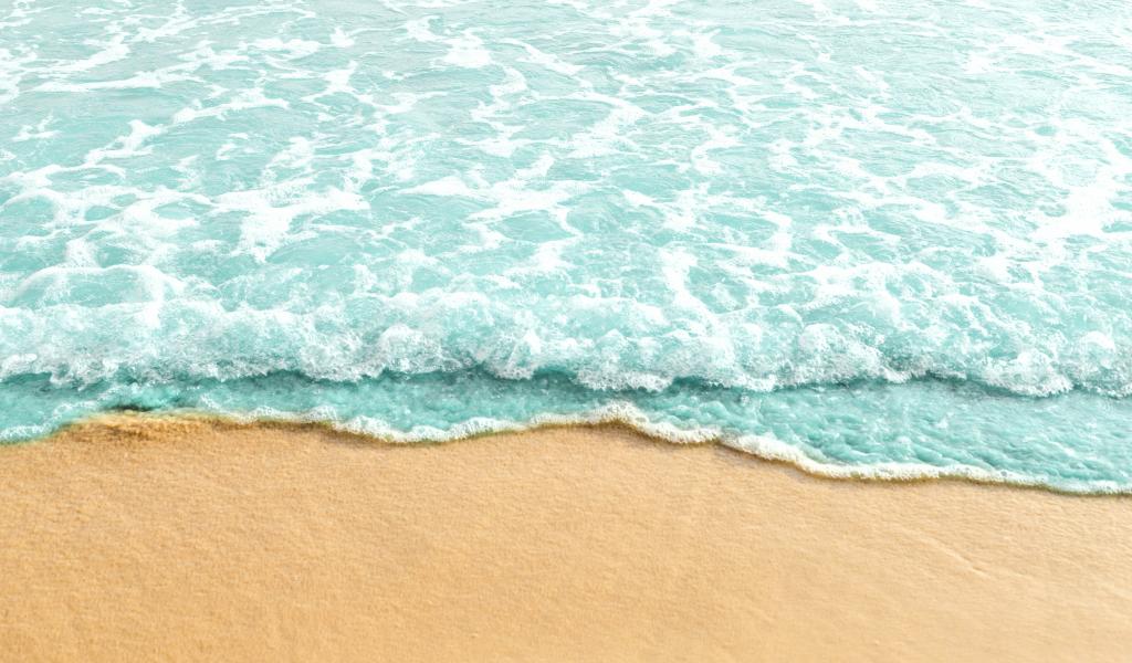 Обои Голубая волна на теплом желтом песке летом