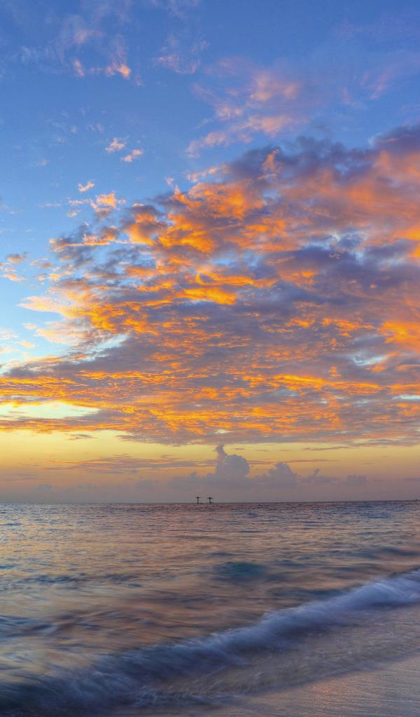 Обои Красивый закат в небе на берегу тропического пляжа