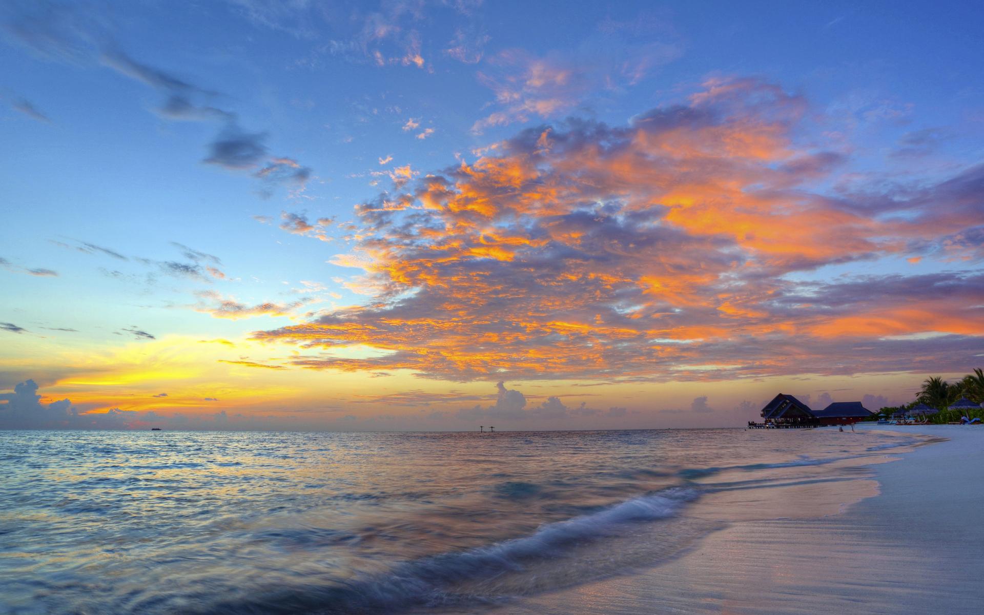 Обои Красивый закат в небе на берегу тропического пляжа