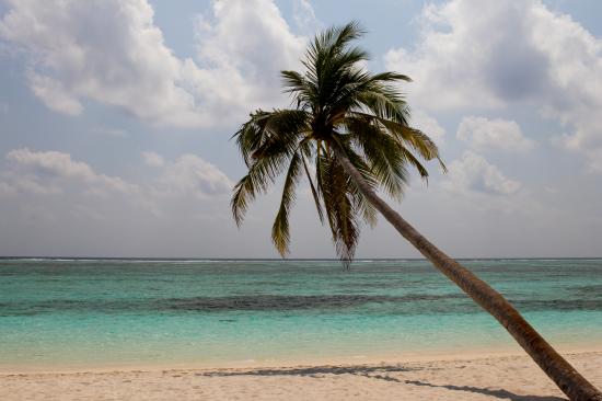 Обои Большая пальма на песке у океана в тропиках