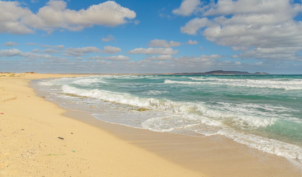 Обои Бушующие морские волны на желтом горячем песке