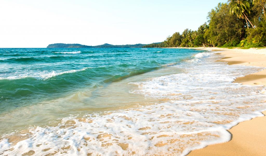 Обои Белая пена на желтом песке тропического пляжа