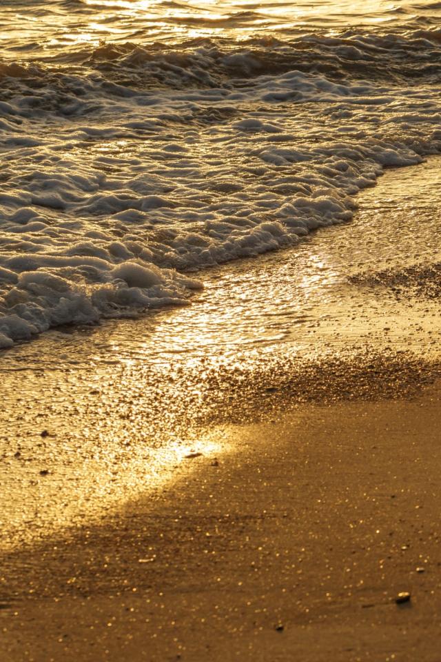 Обои Белая морская пена на желтом мокром песке на пляже