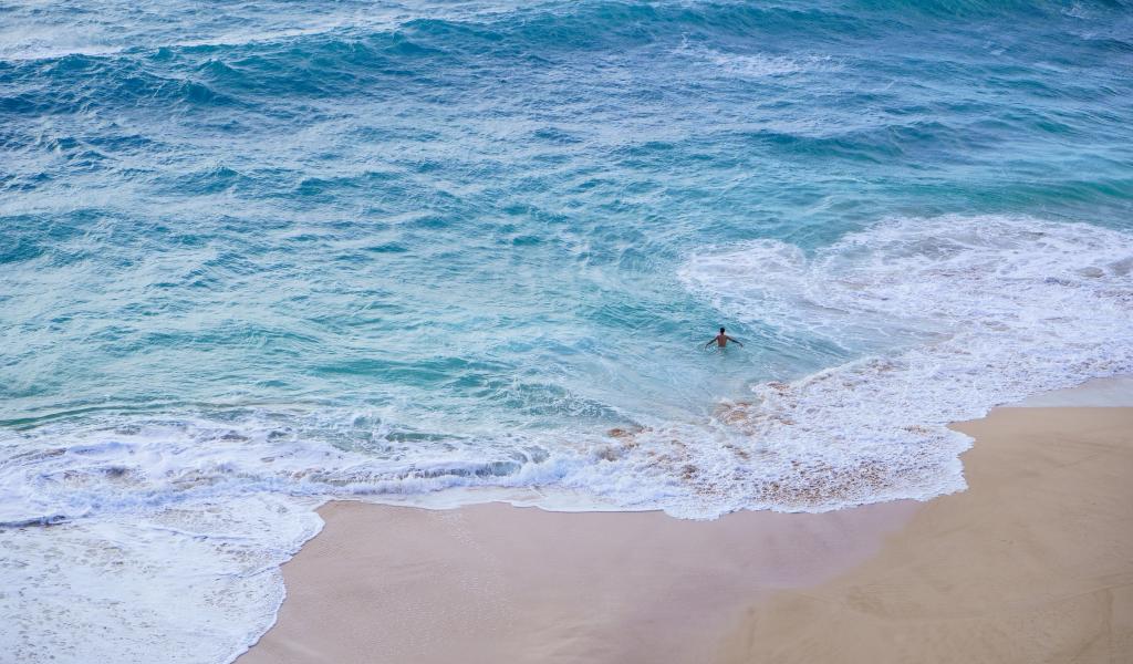 Обои Чистый пляж с белыми морскими волнами на песке