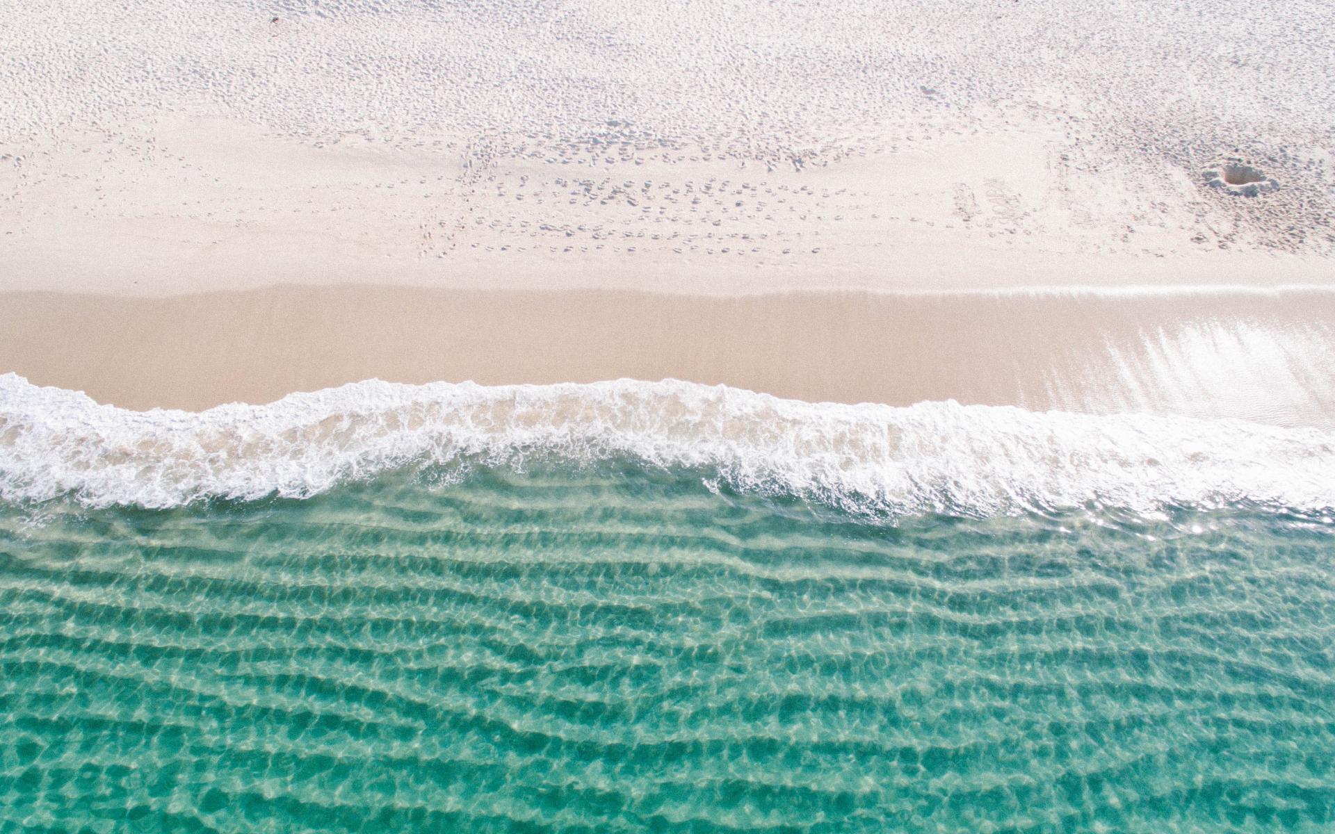 Обои Белый морской песок на берегу у голубой воды