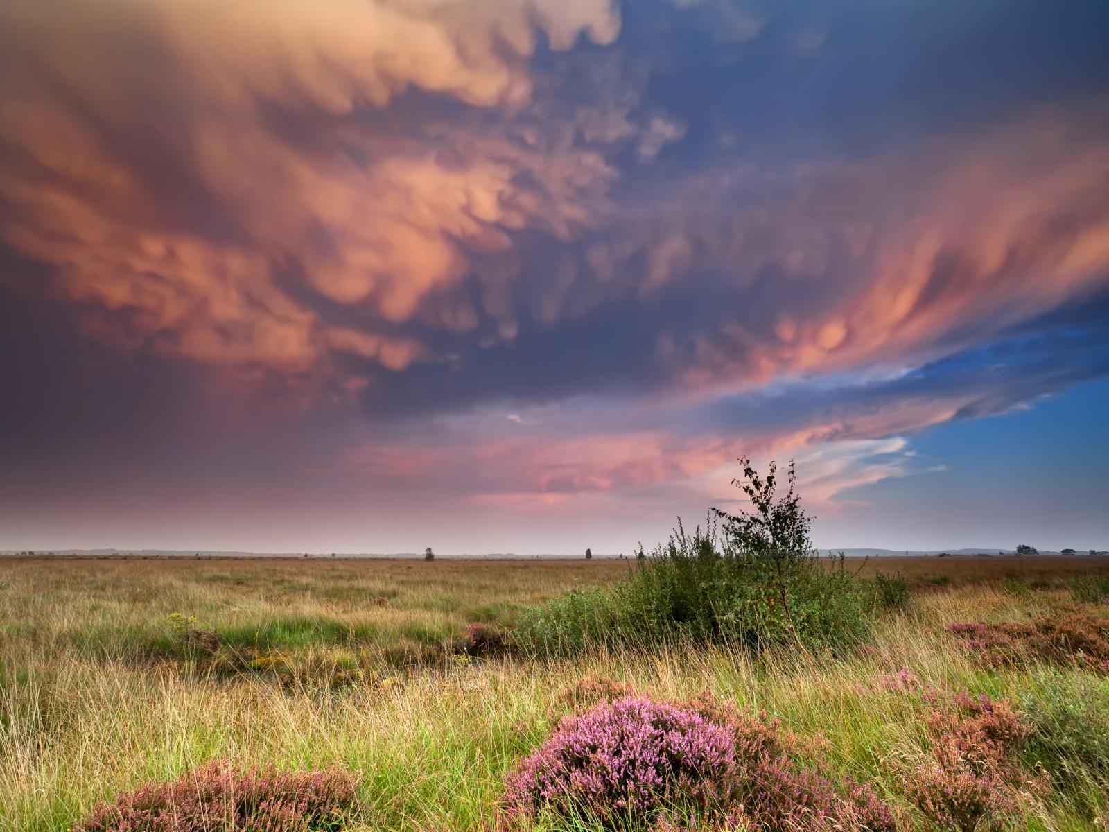 Обои Красивые низкие облака в небе над полем