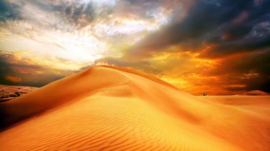 Обои Закат солнце над барханом в пустыне