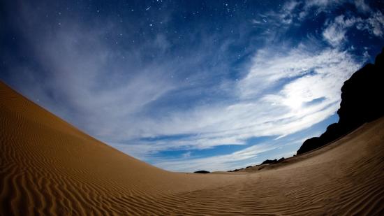 Обои Волнистая песчаная дюна под красивым небом в сумерках