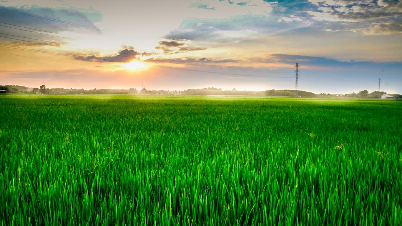 Обои Восход летнего солнца над полем с зеленой пшеницей
