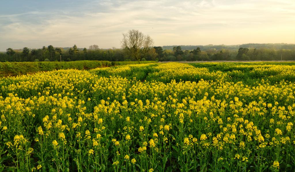 Обои Желтое рапсовое поле в лучах солнца под голубым небом