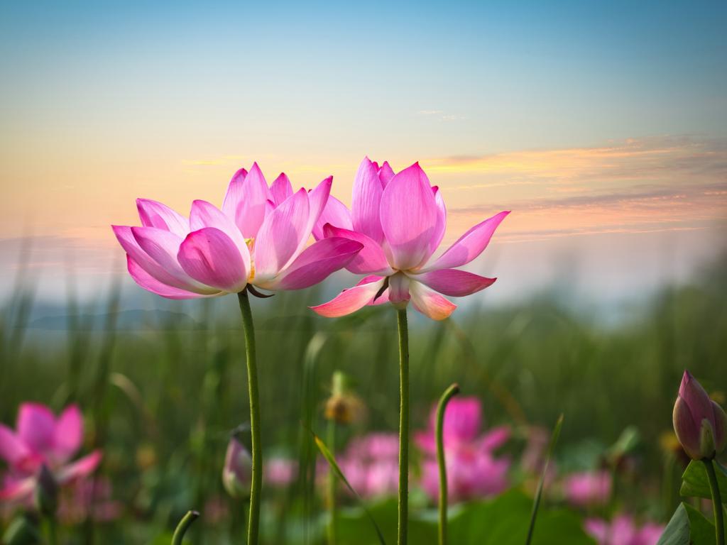 Обои Два розовых лотоса на фоне неба