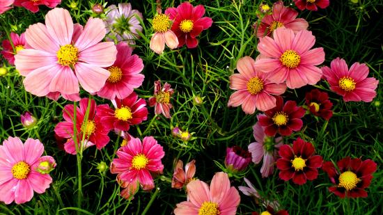 Обои Красивые розовые садовые цветы космея