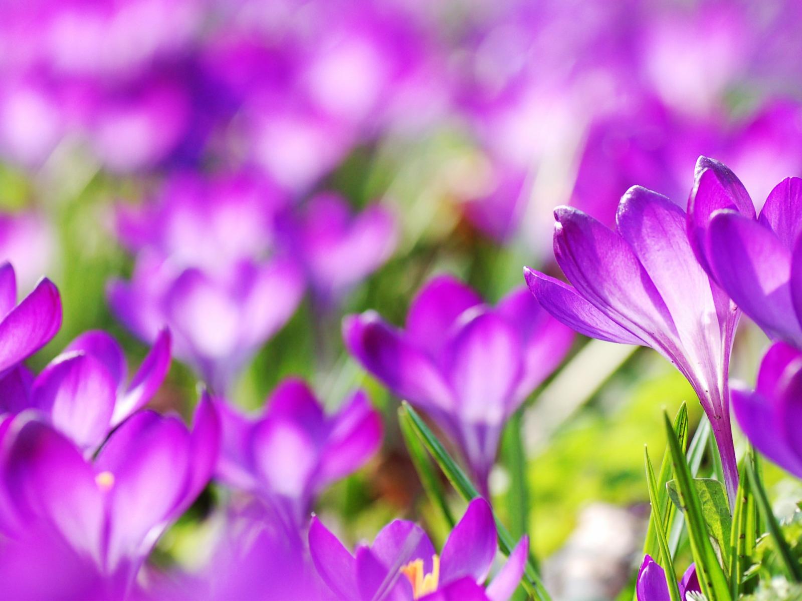 Обои Фиолетовые весенние цветы крокусы