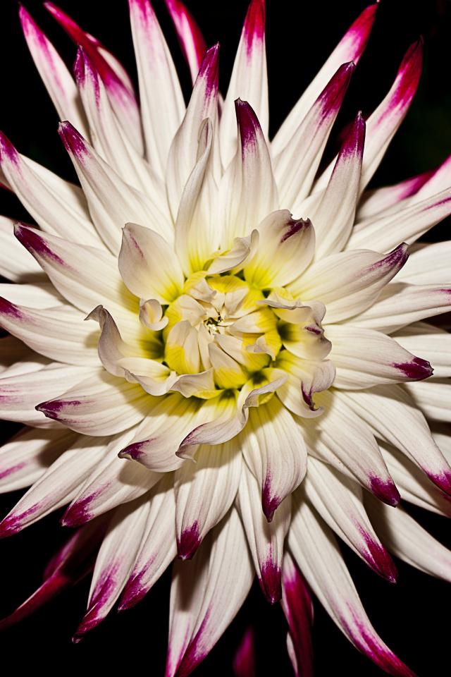 Обои Крупная белая георгина на черном фоне