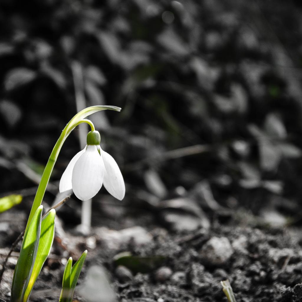 Обои Одинокий белый весенний подснежник