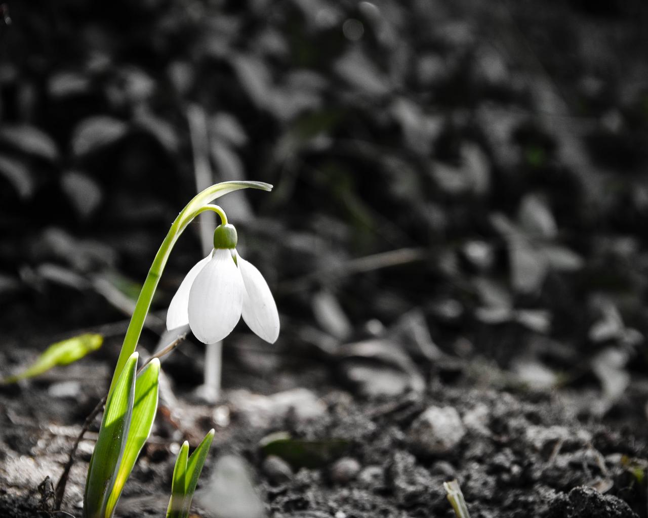 Обои Одинокий белый весенний подснежник