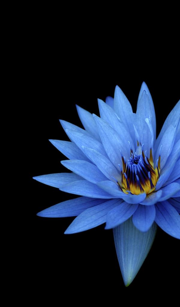 » Обои Голубой цветок лотоса на черном фоне