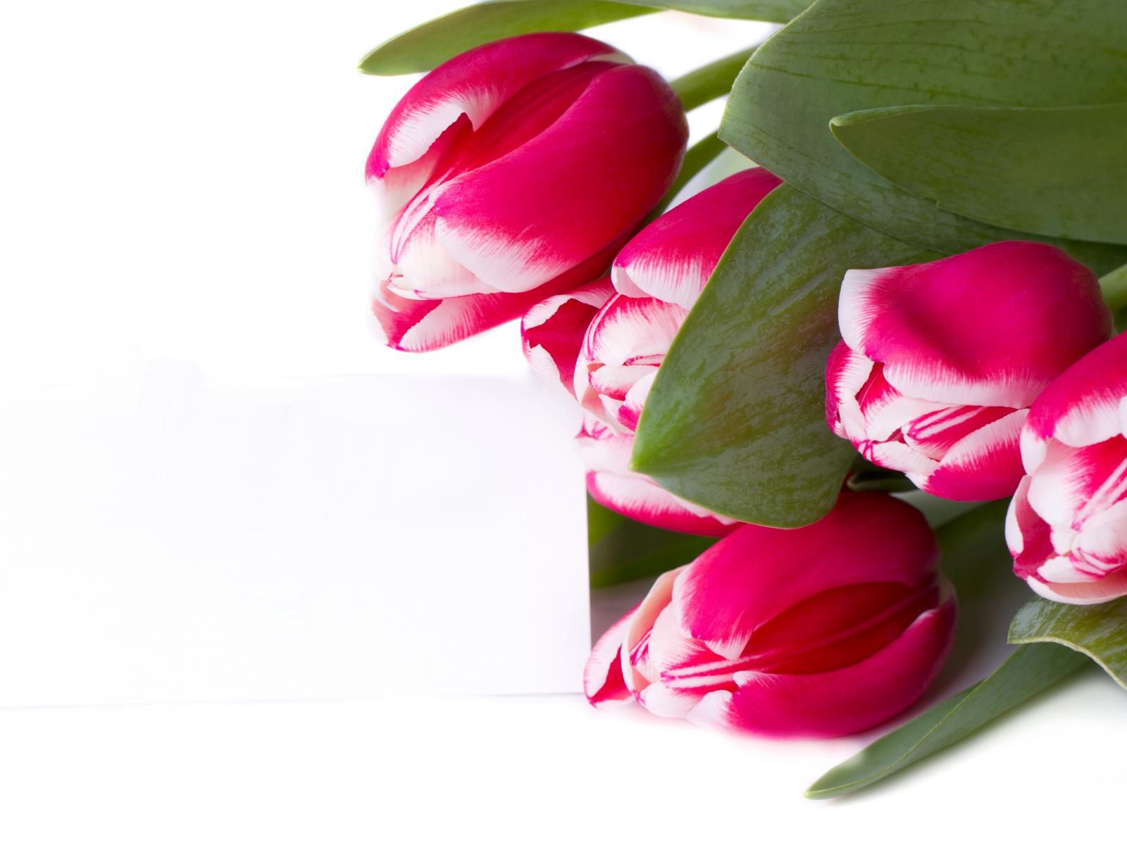 Обои Розовые тюльпаны на белом фоне
