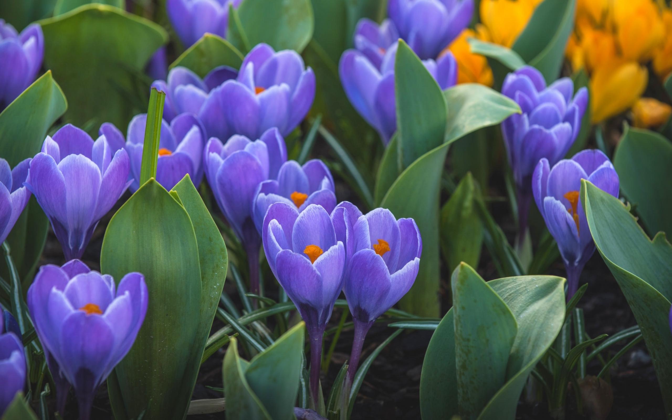 Обои Весенние первоцветы сиреневые крокусы