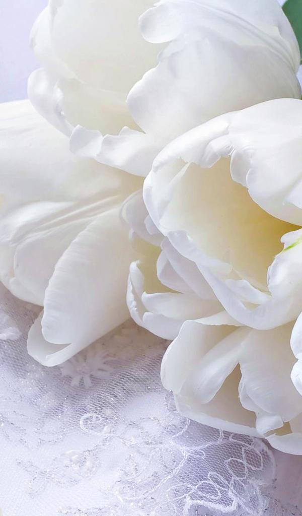 Обои Букет нежных белых тюльпанов и жемчужное ожерелье