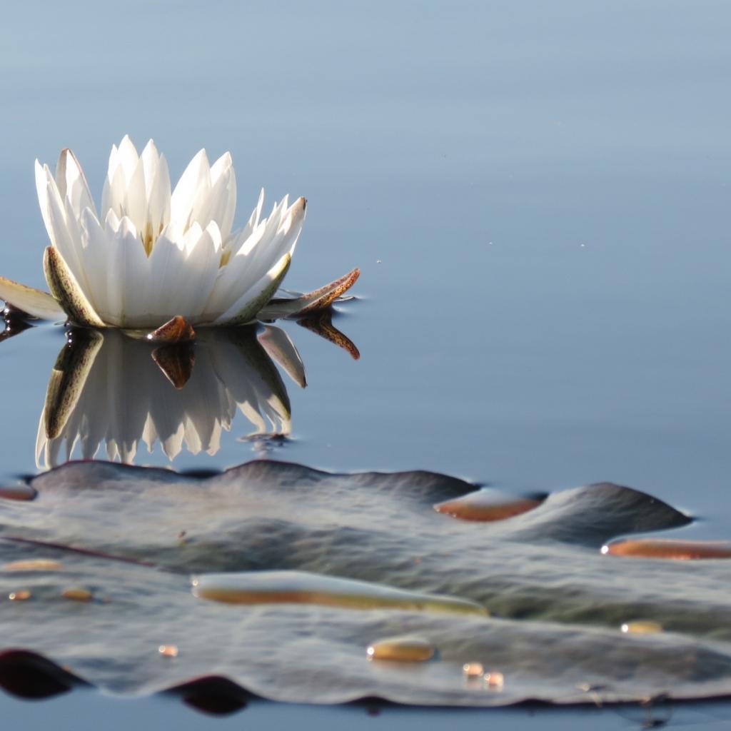 Обои Белый нежный цветок лотоса в водоеме