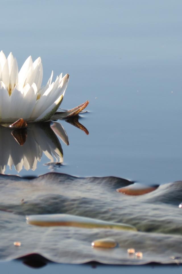 Обои Белый нежный цветок лотоса в водоеме