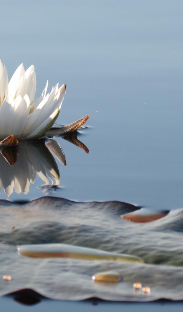 Обои Белый нежный цветок лотоса в водоеме