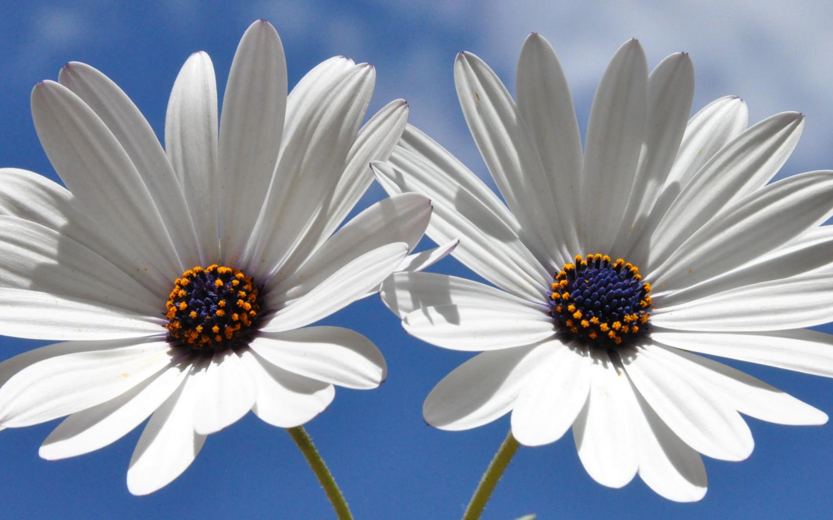 Обои Две белых ромашки с синей серединкой