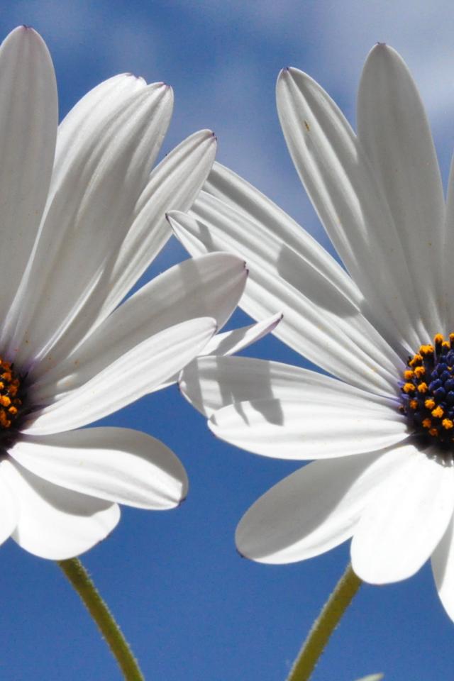 Обои Две белых ромашки с синей серединкой