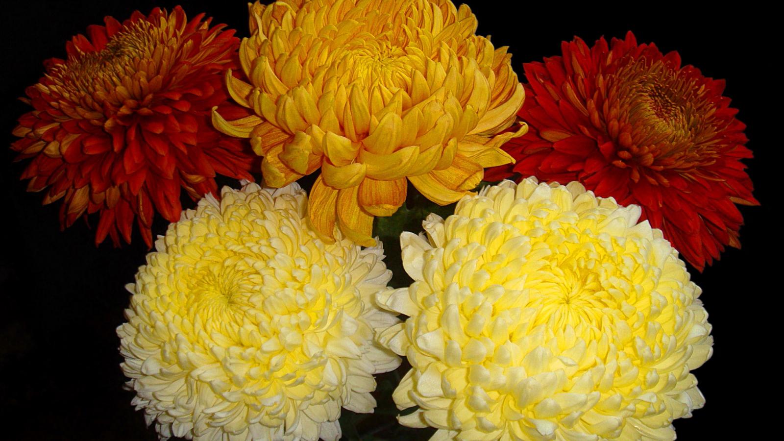 Обои Букет желтых ромашковидных хризантем на черном фоне