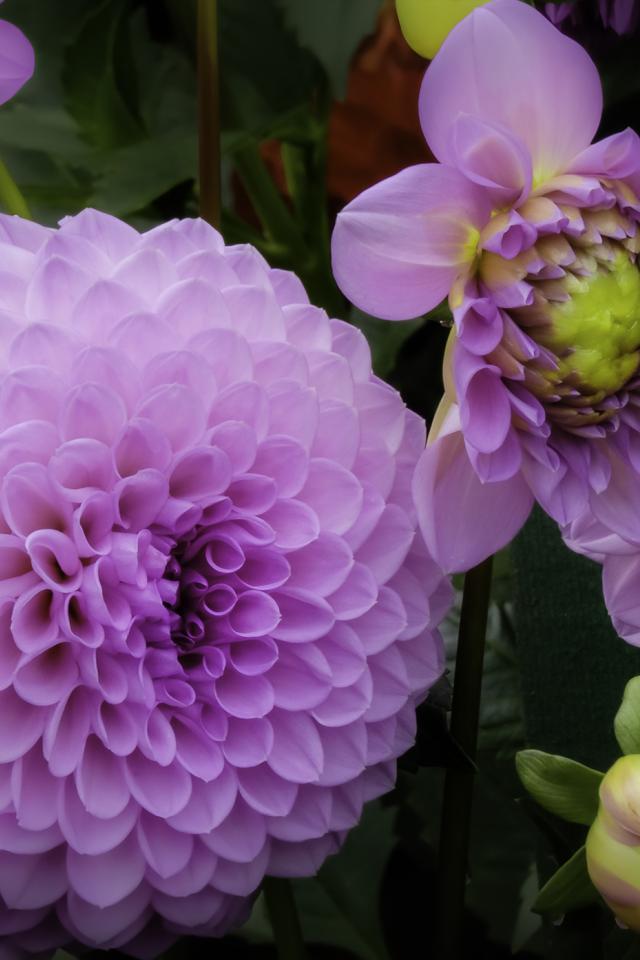 Обои Красивые пышные сиреневые хризантемы