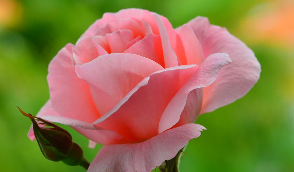 Обои Красивая нежная розовая роза в лучах солнца на клумбе