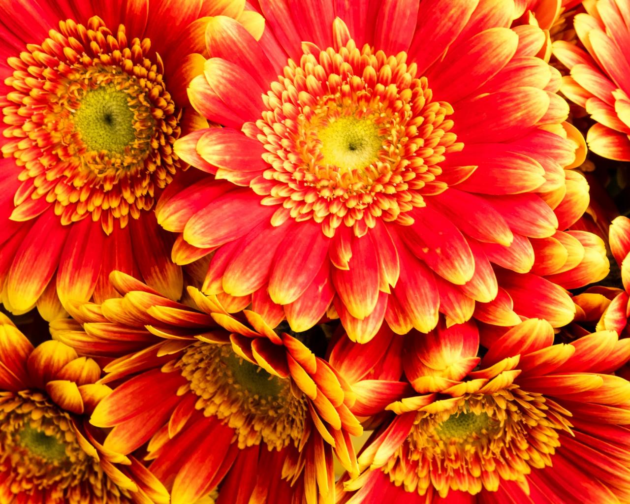 Обои Разноцветные красивые цветы герберы