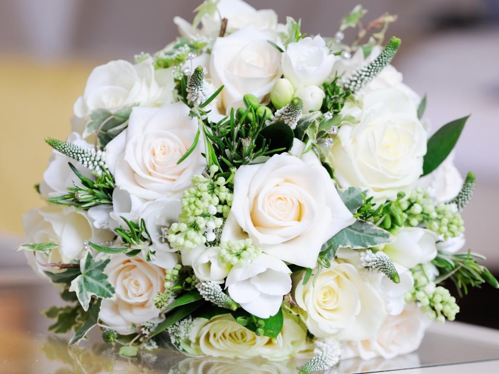Обои Нежный свадебный букет из белых роз